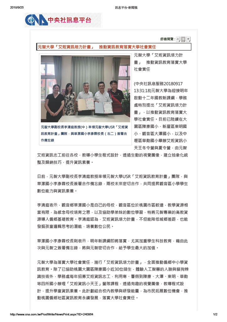 2018.09.17 元智大學「艾妲資訊培力計畫」推動資訊教育落實大學社會責任